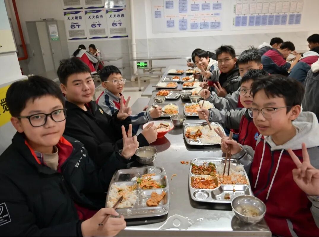 食堂里,大家齐聚一桌,偶尔与同学打趣说笑;餐桌旁,三五好友围坐,分享课堂趣事、畅谈课余见闻,爽朗的笑声不断传开。朋友齐聚的开心与美食刺激味蕾的愉悦,大家各自诉说着自己的快乐,分享零食,暖意融融。