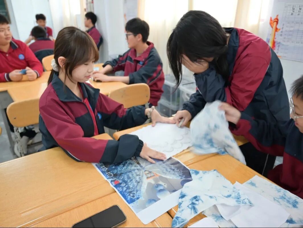 从扎染文化理论知识讲解,到扎染选材、图案捆扎、染色、晾晒等等,所有步骤都由学生们亲自动手参与,课堂氛围轻松有趣,全程实操为主。既能锻炼动手能力与审美素养,又能感受传统工艺的温度,还能结识志同道合的伙伴,分享创作的快乐。