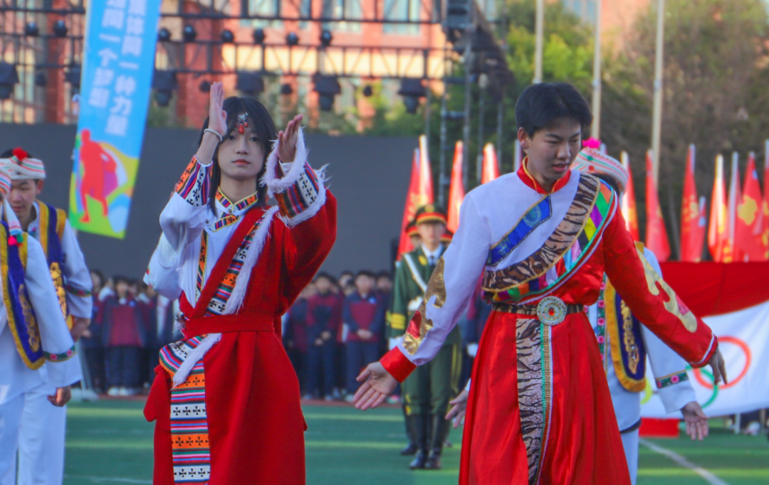 伴随着激昂的运动员进行曲,开幕式拉开了帷幕。国旗方队、五环旗方队、校徽方队依次入场,整齐的步伐踏出少年意气;啦啦操代表队活力四射,扇子代表队气势恢宏,民族代表队独具特色,同学们的每一个步伐,每一个动作,都展现了正道学子的多元风采。